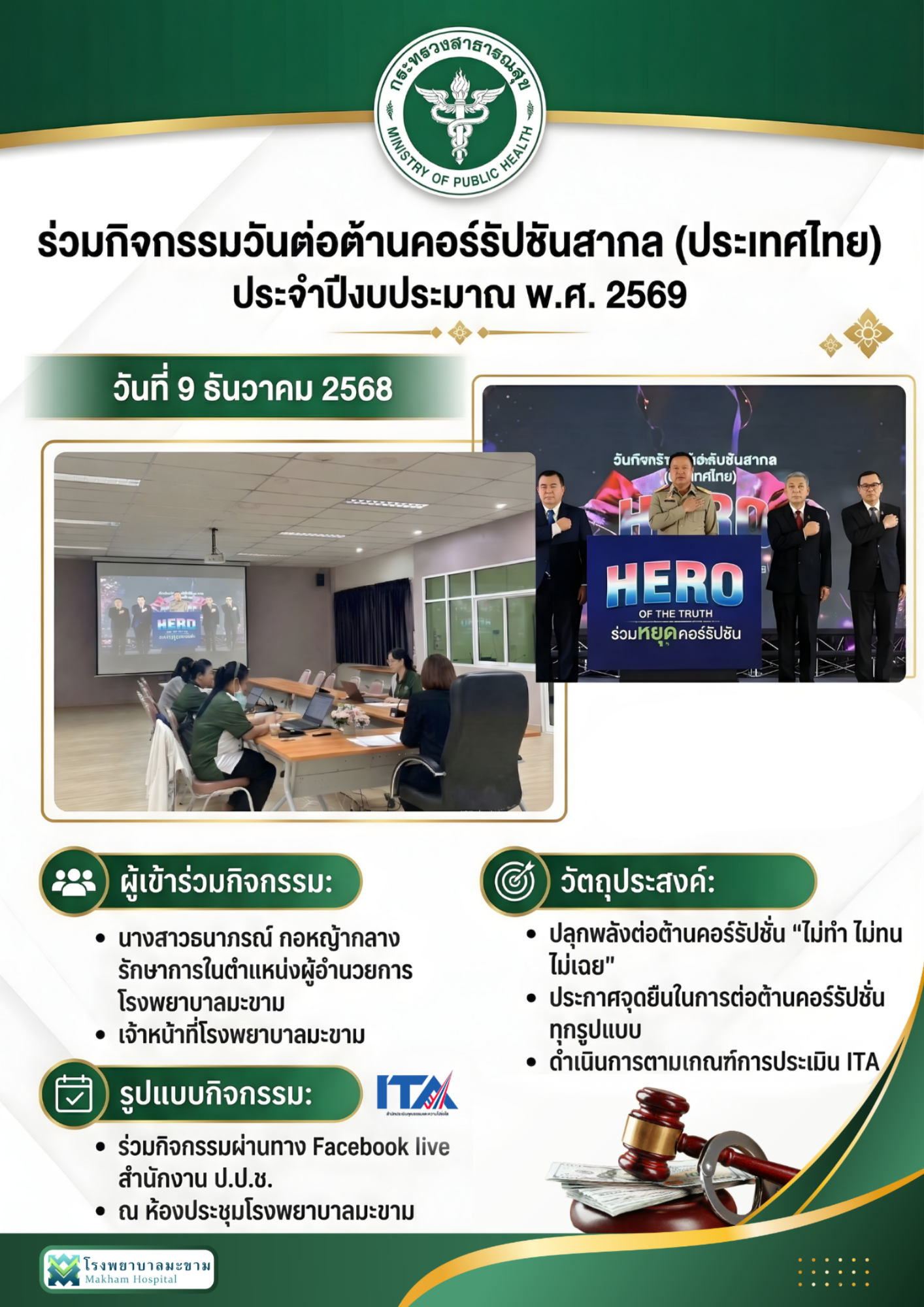 กิจกรรมประกาศเจตนารมณ์ต่อต้านการทุจริตปีงบ2569 ต่อสาธารณชน