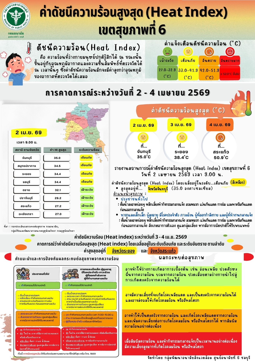 ค่าดัชนีความร้อนสูงสุด (Heat Index) เขตสุขภาพที่ 6
