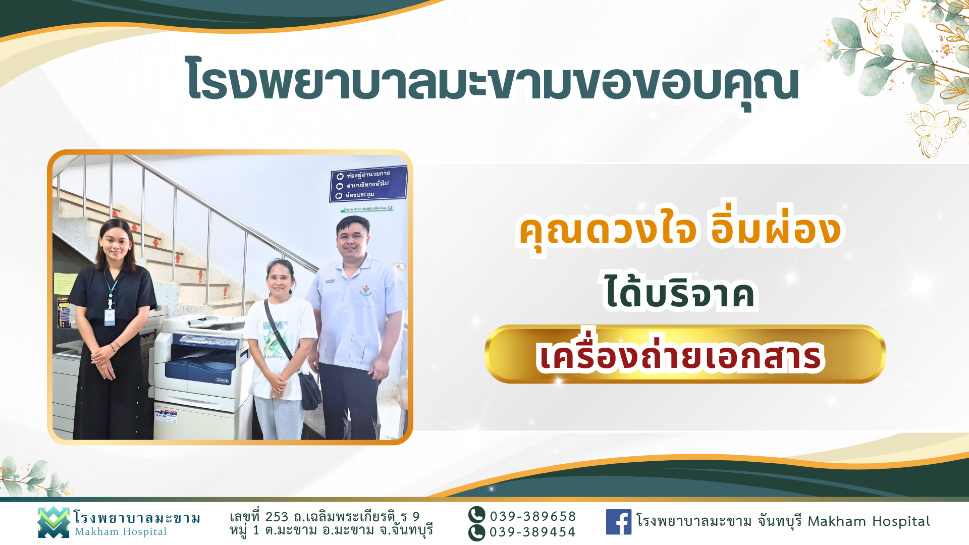 โรงพยาบาลมะขามขอขอบคุณ คุณดวงใจ อิ่มผ่อง ที่ได้บริจาคเครื่องถ่ายเอกสารให้กับทางโรงพยาบาลค่ะ
