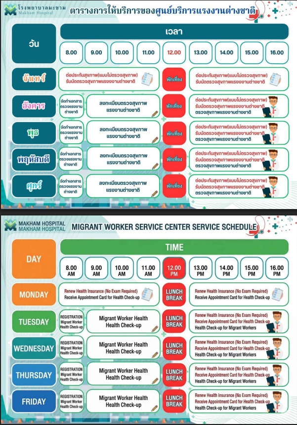 ตารางการให้บริการของศูนย์บริการแรงงานต่างชาติ